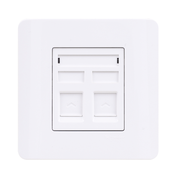 Schneider Electric – Data socket outlet, ZENcelo, 2 gang, cat 6, on shield wallplate – ZENcelo | E8432RJS_6_WE