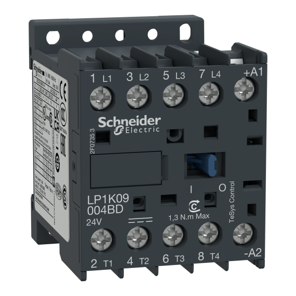 LP1K09004GD – TeSys K contactor – 4P (4 NO) – AC-1 <= 440 V 20 A – 125 V DC coil Schneider Electric