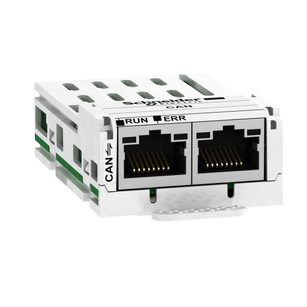 VW3A3608 – CANopen Daisy Chain 2 x RJ45 communication module Schneider Electric This CANopen Daisy chain communication module is an option for variable speed drives of Altivar range. It is equipped with 2 RJ45 connectors. It is compatible with Altivar Machine and Altivar Process drives. It enables integration of your variable speed drive in your process control network. CANopen Daisy Chain 2 x RJ45 communication module VW3A3608 – Lexium 32